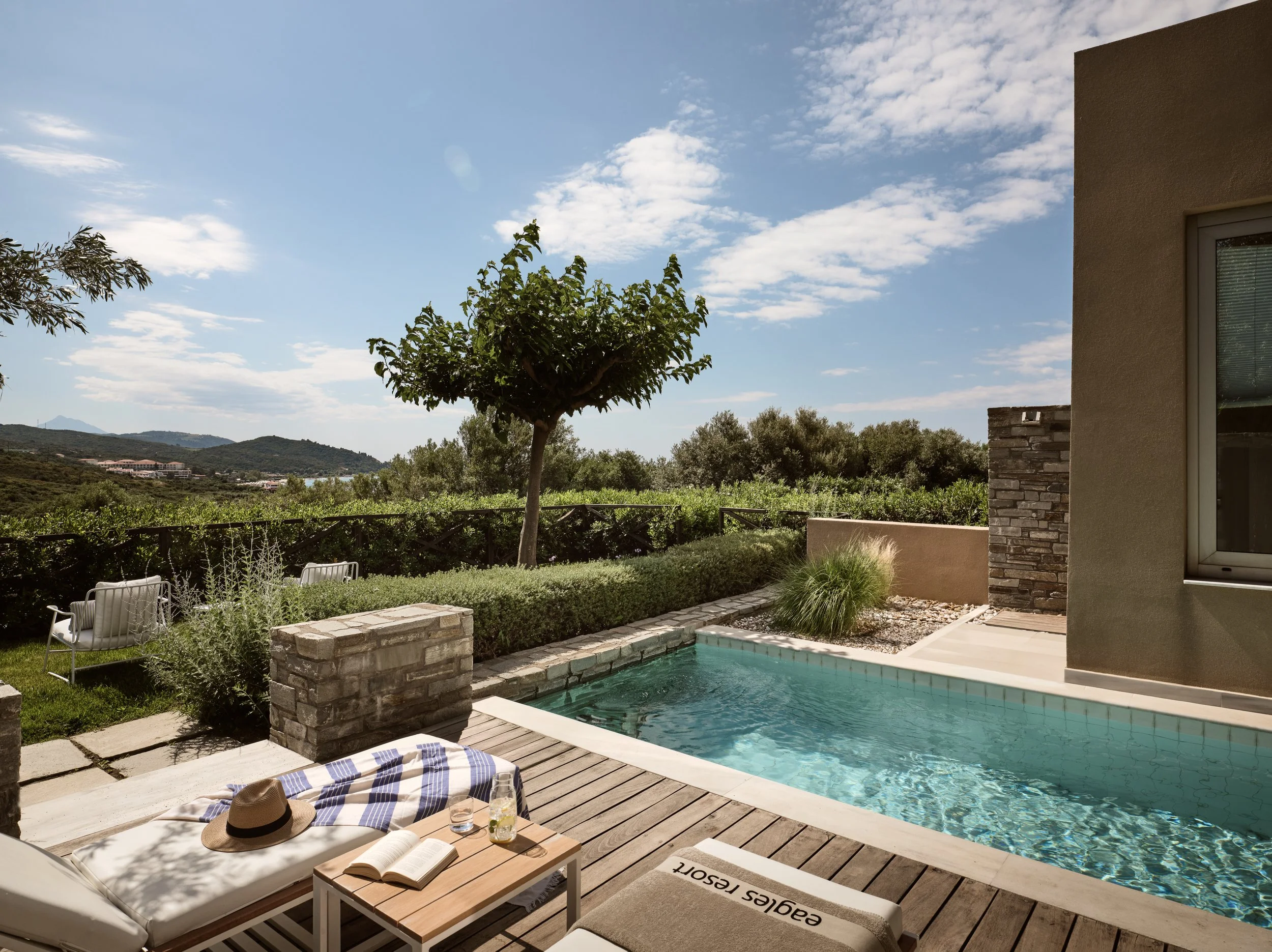 On the shores of Halkidiki and surrounded by lush gardens, Eagles is one of the most beautifully situated resorts in northern Greece. The resort is made up of two properties: Eagles Villas, with its 42 stylish pool villas; and Eagles Palace, a five-star hotel with 157 rooms, suites and bungalows right on the beach, all with stunning sea views.